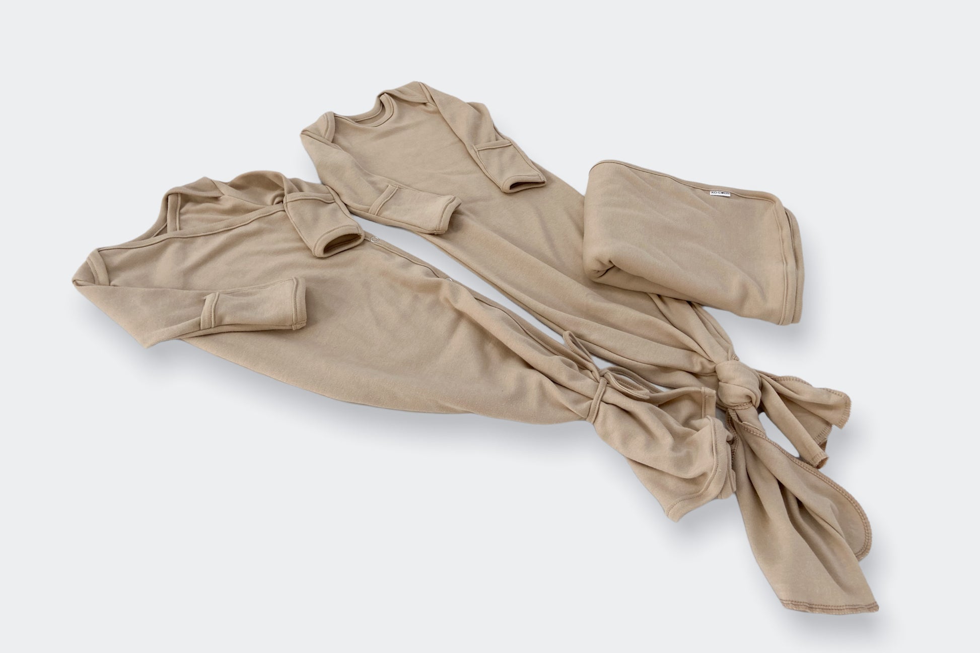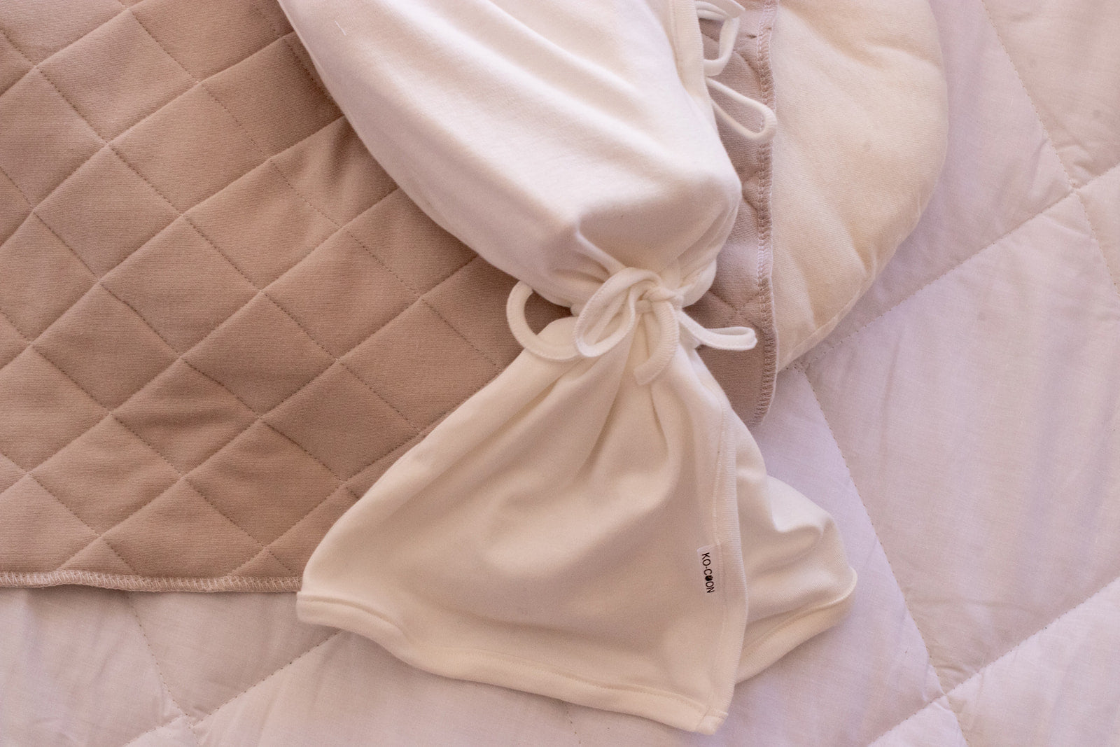 We love natural, simple, easy and practical things. Our Baby Kimono Sleeping Gowns with mittens are perfect for wearing inside our Cocoon swaddles or Sleeping bags, easy to use with a kimono design and bottom easy knot. The cuff mittens are a perfect addition to keep those little hands warm and avoid face scratches.