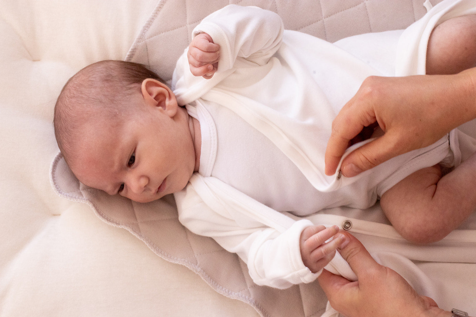 Everything your newborn needs for the first days – in one soft, coordinated bundle. The Essential Wear Newborn Set is a 4-piece wardrobe and sleepwear starter designed for comfort, ease, and practicality from day one. It includes our signature knotted kimono gown with built-in cuff mittens, a stretchy cotton beanie, a zipped swaddle for restful sleep, and a breathable receiving blanket.